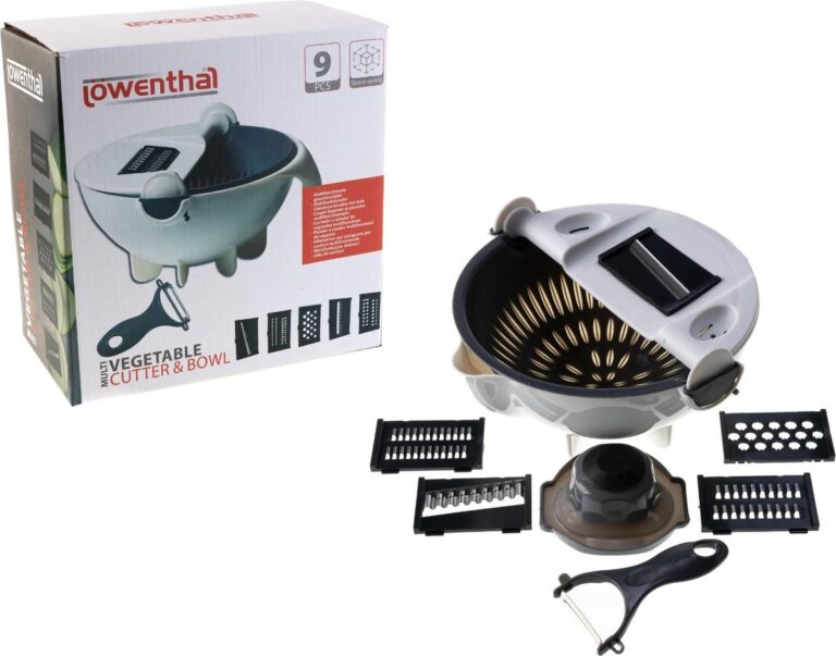 De Lowenthal Multifunctionele Groente- en Fruitsnijder bespaart tijd en moeite in de keuken. Met meerdere messen snijd, rasp en hak je moeiteloos groenten en fruit in perfecte vormen. Het ergonomische ontwerp en de antislipbasis zorgen voor veiligheid en gebruiksgemak. Deze alles-in-één oplossing is ideaal voor gezonde maaltijden en voorkomt rommel. Duurzaam, efficiënt en veelzijdig – een must-have voor elke keukenliefhebber!